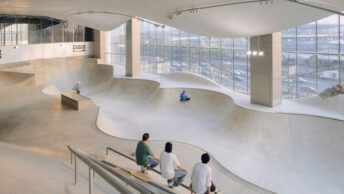Der Moreprk Skyline Skatepark von AAN Architects im Xuhui-Distrikt Shanghai verbindet Architektur, Sport und Skyline-Erlebnis. Ein spektakulärer Skatepark in 20 Metern Höhe über den Dächern der Metropole.