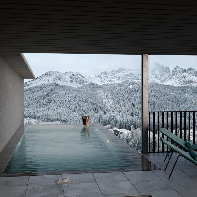 Viele Geschichten aus Brixen erzählen vom Wasser - und auch im Boutique Hotel Badhaus umspült das „blaue Gold“ Körper und Sinne, selbst wenn es schneit.