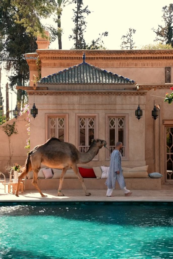 Das Anwesen, ursprünglich als private Villa des renommierten Architekten Charles Boccara entworfen, gehört zu den ältesten Häusern der Palmeraie. Heute wurde es von dem niederländischen Paar Gert-Jan van den Bergh und Corinne in ein außergewöhnliches Boutiquehotel verwandelt – mit dem Anspruch, einen Ort zu schaffen, der sich eher wie ein Zuhause als wie ein Hotel anfühlt.