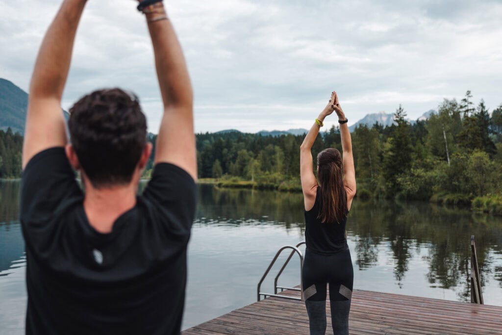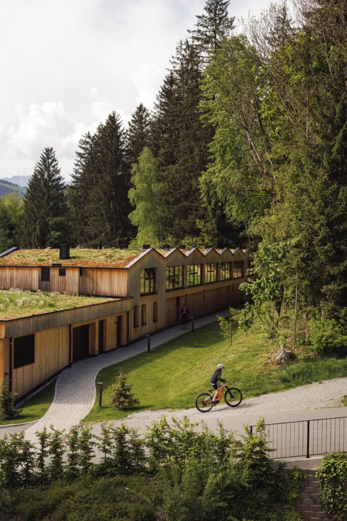 Wer statt zum Golfschläger lieber zum Wanderstock oder zum E-Bike greifen möchte, kann direkt vor der Hoteltür losgehen oder -fahren. Wie wäre es mit einer leichten Runde zu Fuß um den See oder etwas schwerer die Streif hinauf vom Zielhang zum Starthaus. Mit zwei Rädern geht es zur Kitzbühler Hausrunde auf schönen Nebenstraßen oder zur Fleckalm hinauf zum Speichersee.