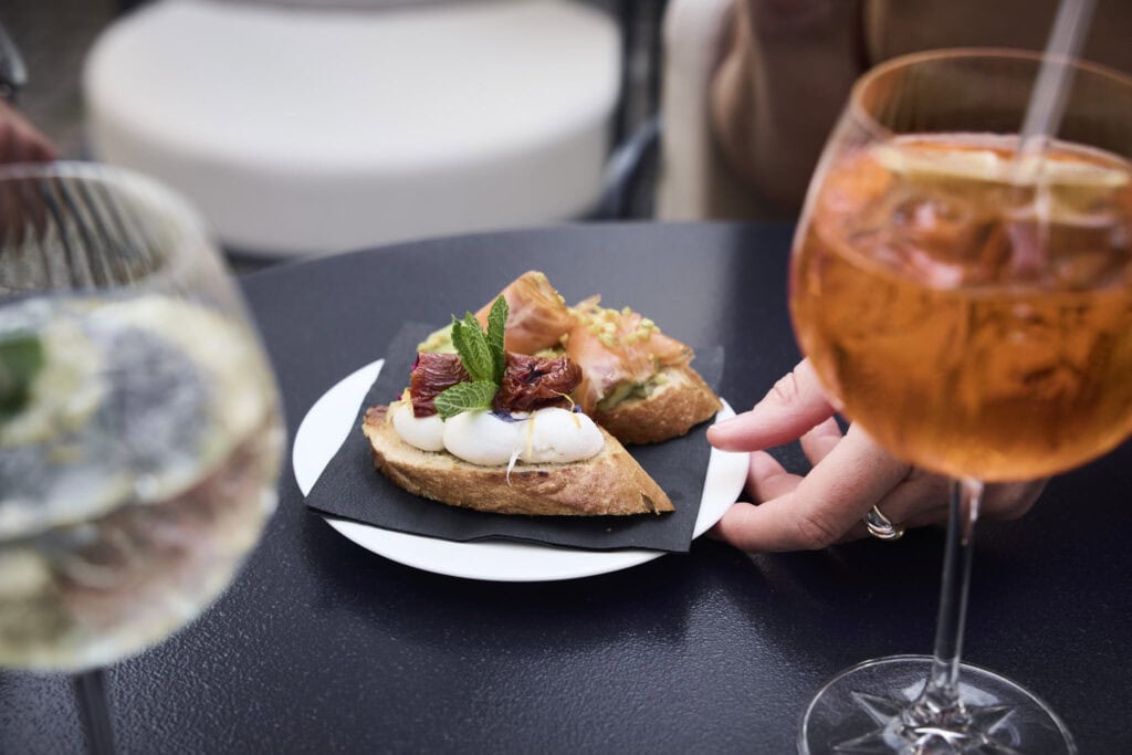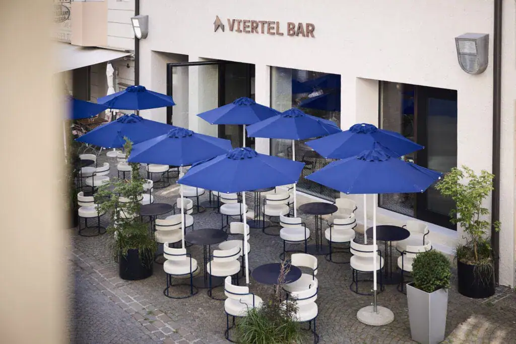 Ein Schluck daraus wirkt belebend. Oder darf es ein Bier sein? In der Viertel Bar, deren ruhiger Teil sich in diesem Innenhof befindet, wird das eigene handwerklich gebraute Viertel Bier serviert. In Maßen genossen, darf die kühle Bitterkeit auf der Zunge die Sinne wecken, Gespräche anstoßen und ein Gefühl von Leichtigkeit entstehen lassen, während die Sonnenstrahlen ins Gesicht scheinen. Dazu die Apero-Etagere mit Käse, Wurst, Grissini, Oliven…