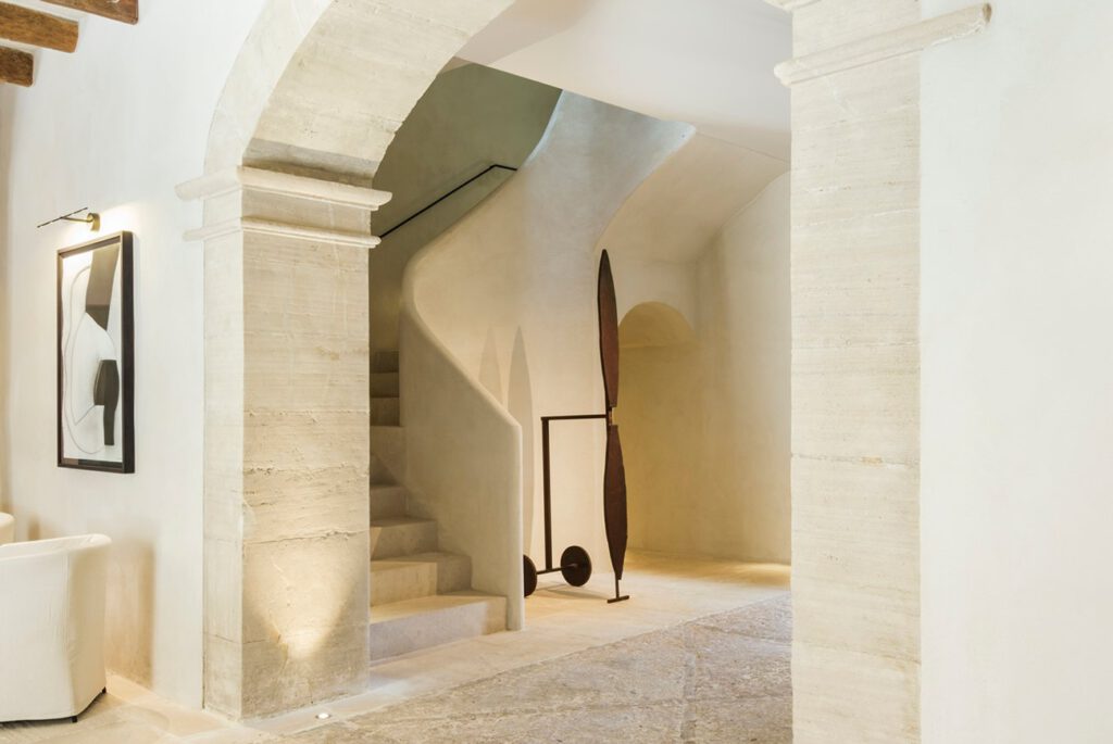 Das Ergebnis ist ein spannungsvolles Zusammenspiel aus Tradition und zeitgenössischem Design. Verantwortlich für die behutsame Transformation war unter anderem der Architekt Sergi Bastidas, der für seine sensible Arbeit mit historischen Gebäuden auf Mallorca bekannt ist.