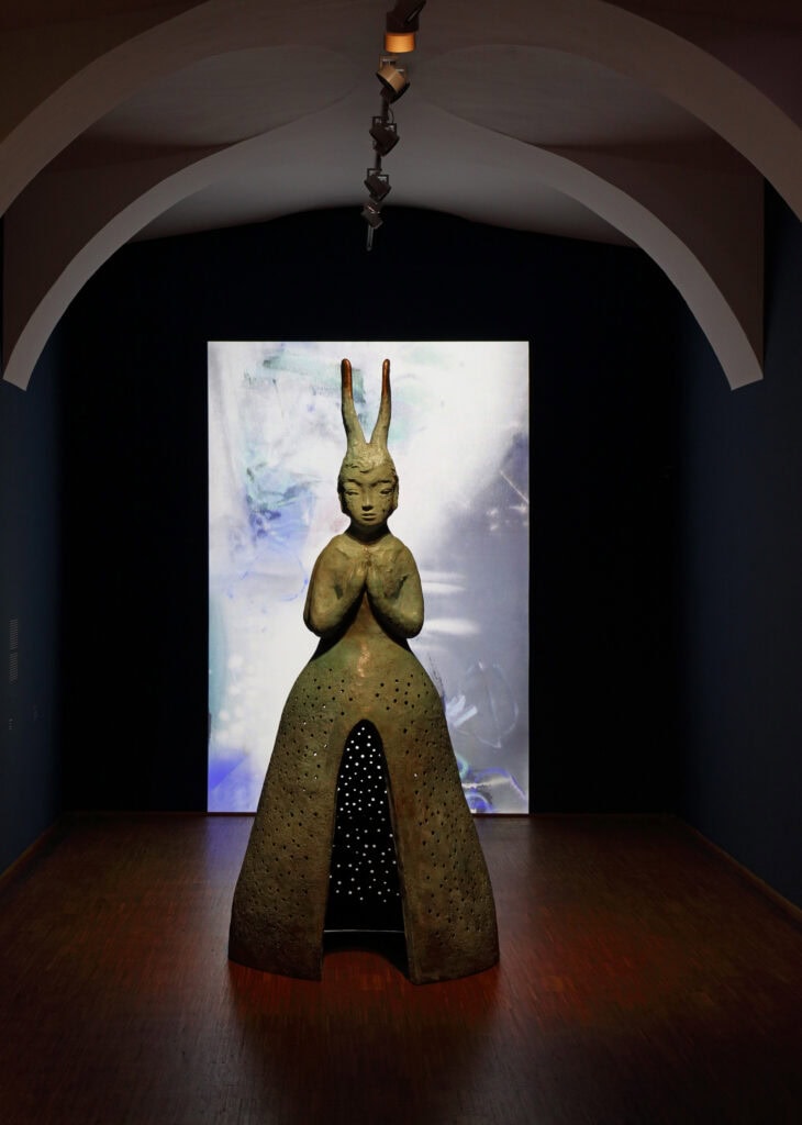 In Usagi Kannon, a sculpture uniting the rabbit with Kannon, the Bodhisattva of Compassion, Ikemura transforms empathy into form.
