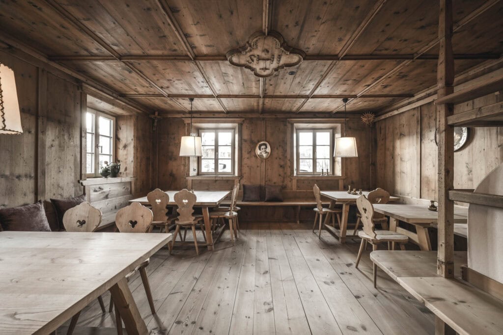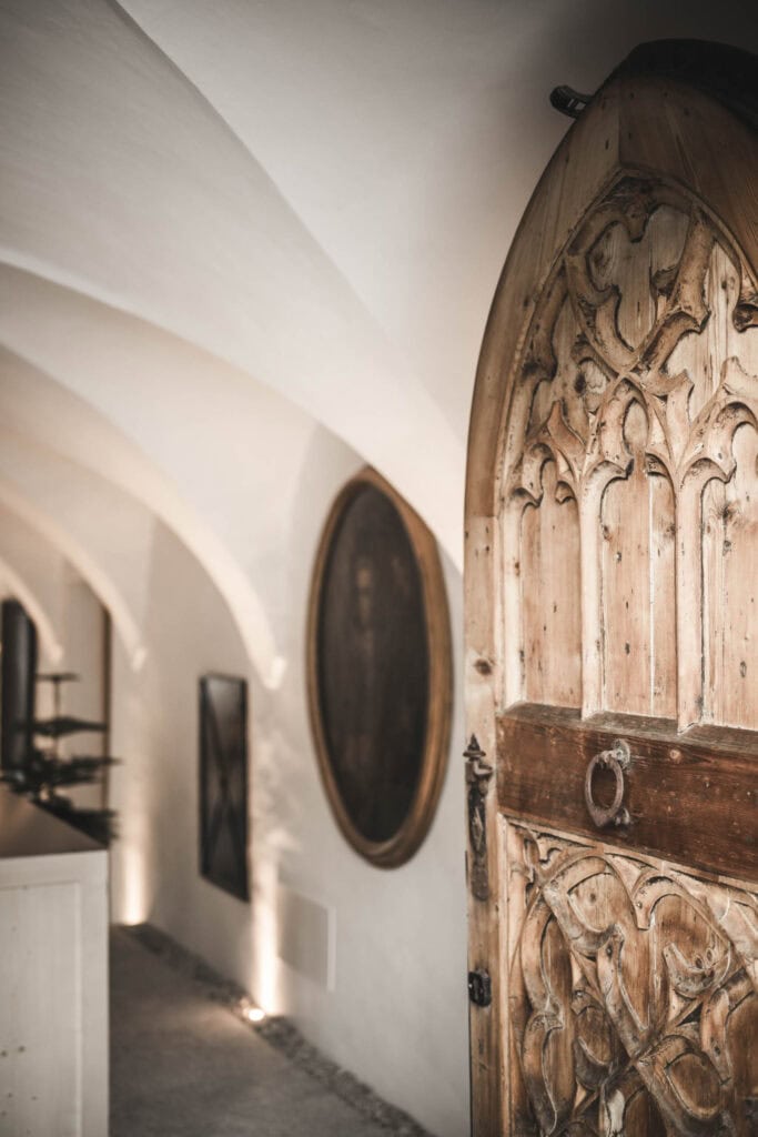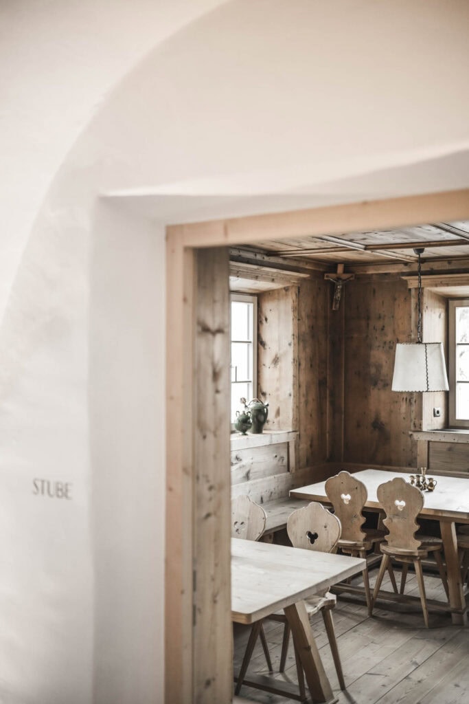 Das Hofergut ist ein Haus mit Geschichte, die bis ins Mittelalter zurückreicht. Charakterstark und atmosphärisch wurde es behutsam in die Gegenwart geführt, ohne die Spuren der Vergangenheit wegzuradieren. Die alte Stube, die Räucherküche und die gewölbten Mauern erzählen davon – ebenso wie die in Stein gefasste Tür mit ihren überlieferten Schnitzereien.