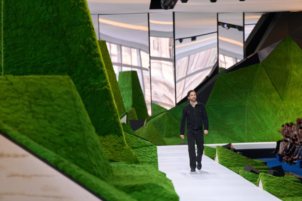 Die Präsentation der Kollektion fand in der Cour Carrée des Musée du Louvre statt. Für die Inszenierung entwarf Production Designer Jeremy Hindle eine abstrakte Landschaft – eine Art Neo-Natur, gesehen durch das Prisma der Zukunft.