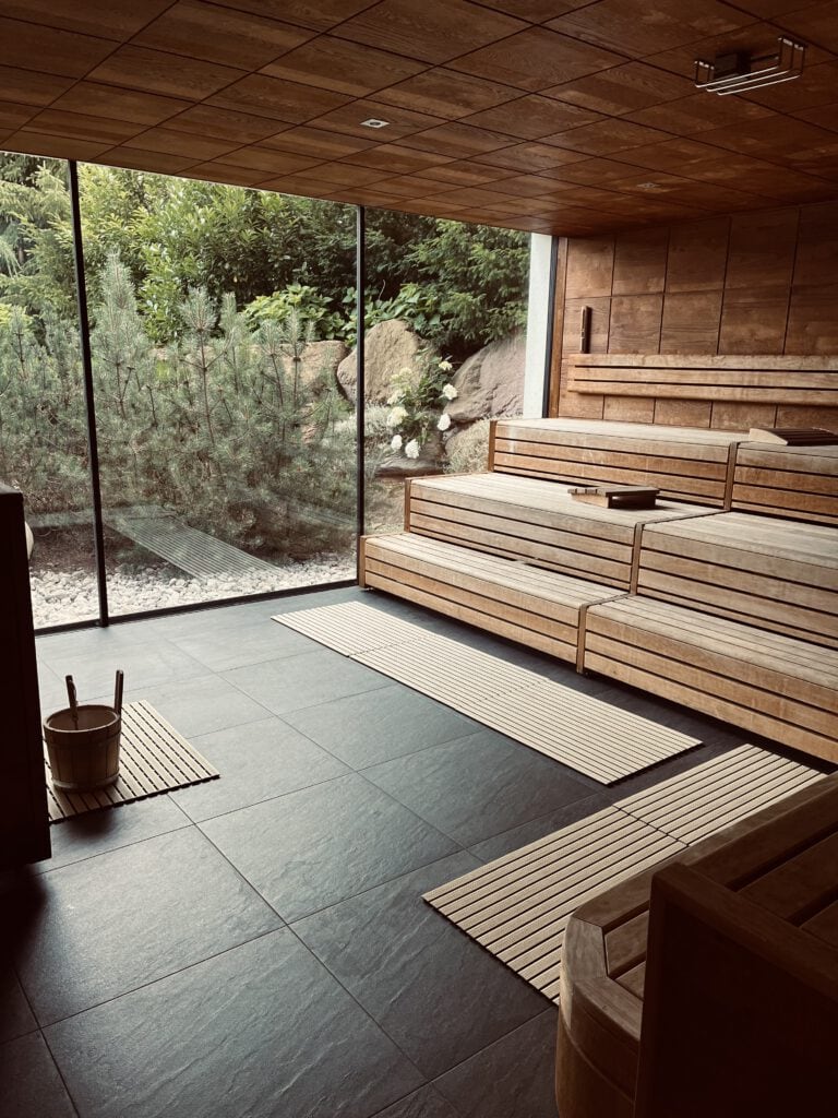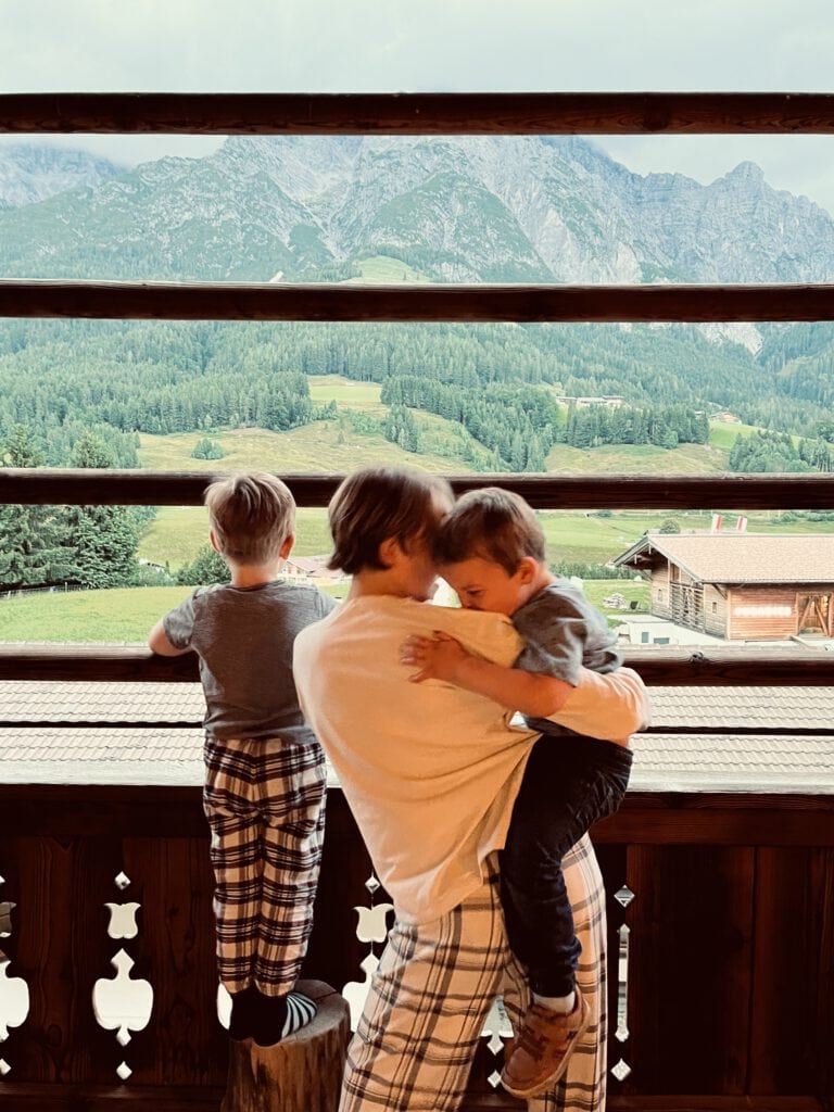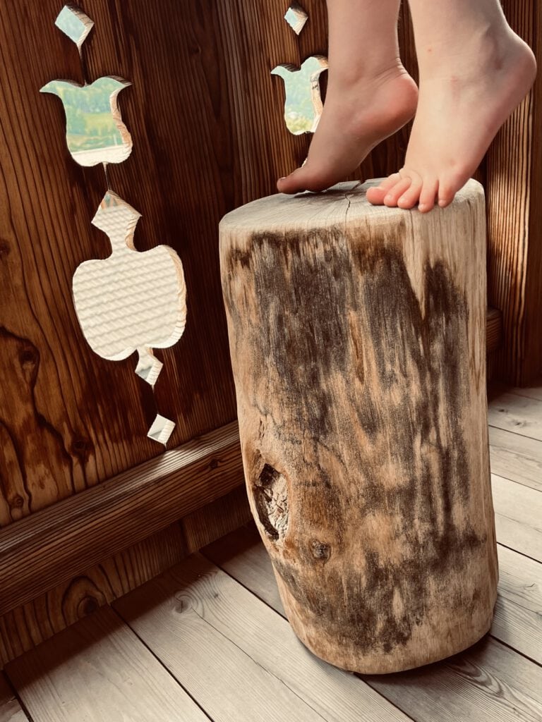 Zwischendurch schleichen sich die Erwachsenen abwechselnd ins Adults-Only-Saunahaus zum Durchatmen und genießen den Blick auf Bäume und Berge und die herbeigesehnten Momente der Ruhe.