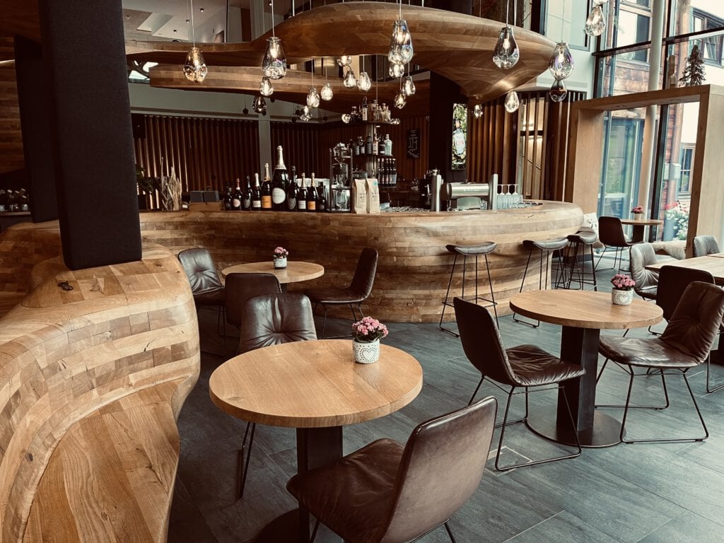 Warmherzig und unaufgeregt werden wir von Puradies-Inhaber Michael Madreiter beim Check In begrüßt. Wir staunen über die imposante moderne Bar mit den vielen Eichenholzquadern und freuen uns unausgesprochen schon auf einen Cocktail-Abend zu zweit.
