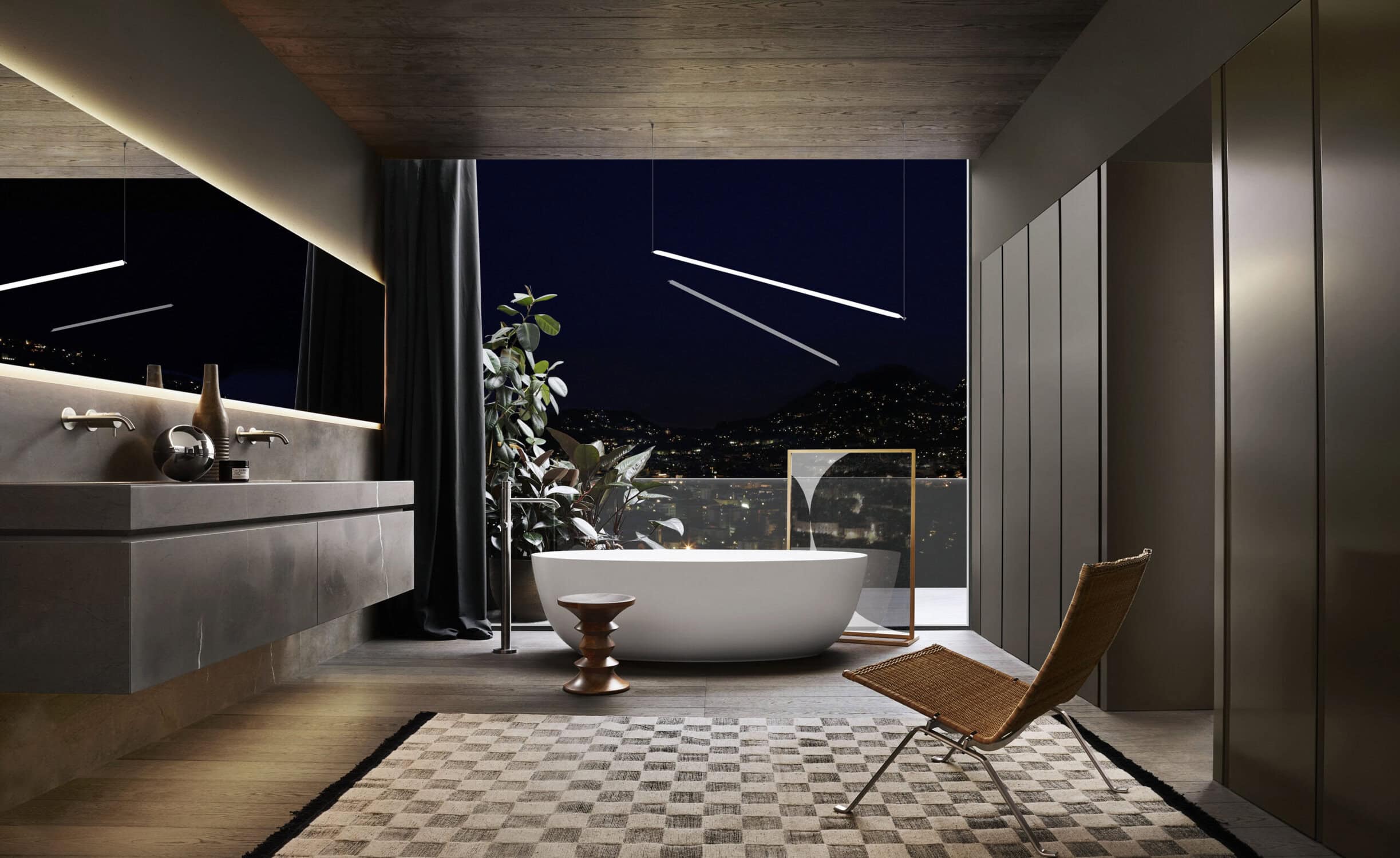 Formale Strenge, edle Materialien und zeitlose Eleganz im Bad