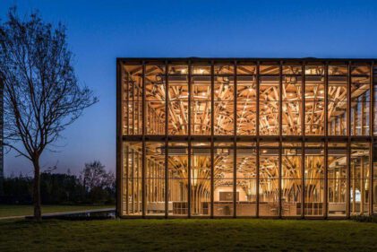 A universal space made of timber: LUO Studio’s Longfu Life Experience Center is a modular, sustainable building system combining flexibility, biophilic design and resource efficiency.