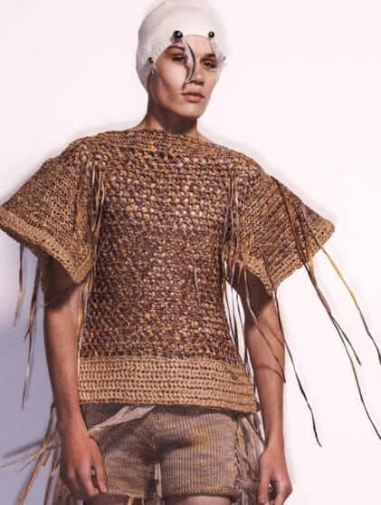 Oscar Ouyang turns traditional knitwear into a narrative system of symbols, texture, and gender-neutral silhouettes.