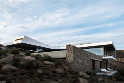 A residence that embraces the terrain – the Aimasia Residence by A31 Architecture above Elia Beach on Mykonos merges Greek building tradition with contemporary design.