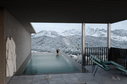 Viele Geschichten aus Brixen erzählen vom Wasser - und auch im Boutique Hotel Badhaus umspült das „blaue Gold“ Körper und Sinne, selbst wenn es schneit.