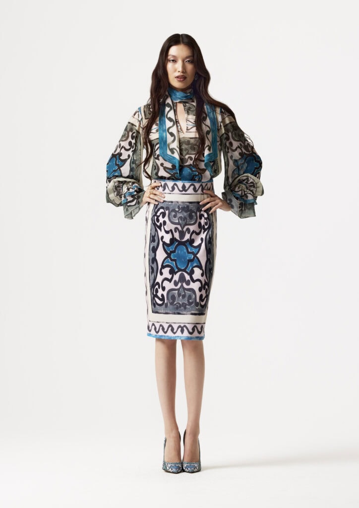 Statt nostalgischer Archiv-Zitate entwickelten die Designer eine neue visuelle Sprache: Ölmalerei auf Leinwand wird in Prints transformiert, auf Seide und edle Stoffe übertragen – Memory becomes Vision. Das Ergebnis ist eine Kollektion, die handwerkliche Präzision mit emotionalem Storytelling verbindet.