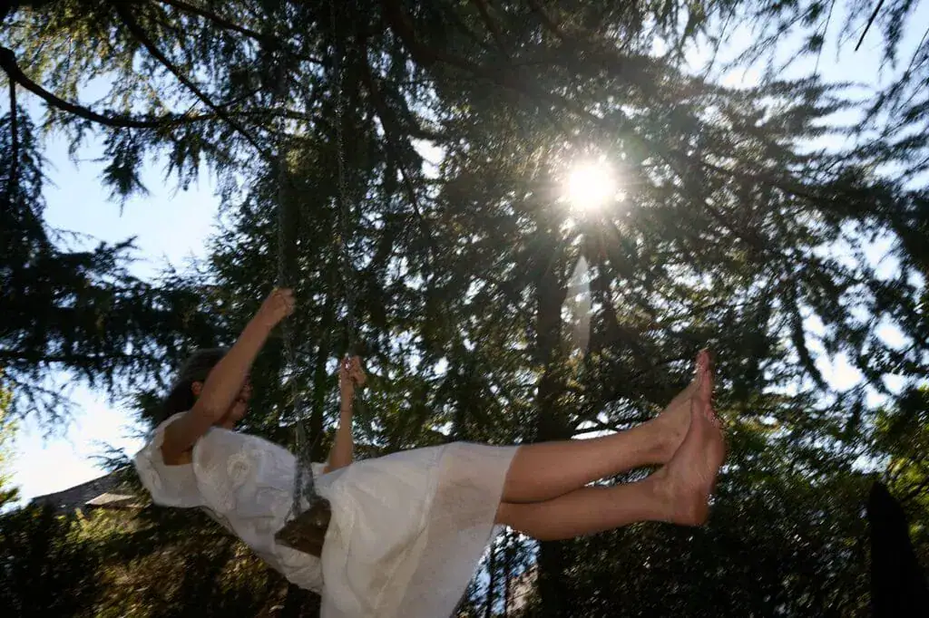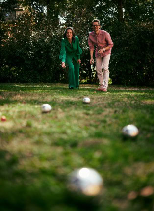 Um sechs Uhr morgens ist es noch still. Vögel zwitschern leise, der Nachbarshahn kräht. Erste Schritte sind auf dem Kies zu hören. In der Ferne klingen Kuhglocken. Und hier und da ein Sprung in den Pool. Tassen klirren. Eine Boccia-Kugel rollt dumpf über die Wiese, stößt an eine andere, dann Stille.