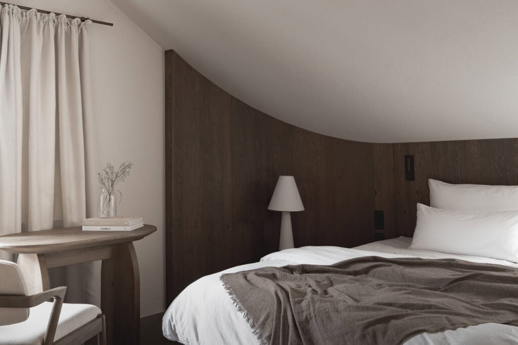 Here, the connecting element of the house even lends its name to the hotel. The staircase is its very heart. Its shapes and materials are echoed throughout every room. Perhaps it’s also an invitation to pause for a moment within this sense of shelter, to reflect on which step of life you’re currently standing on, and which floor you wish to explore next. The subtle imperfection of the staircase is a gentle reminder that life itself doesn’t always follow a straight line.