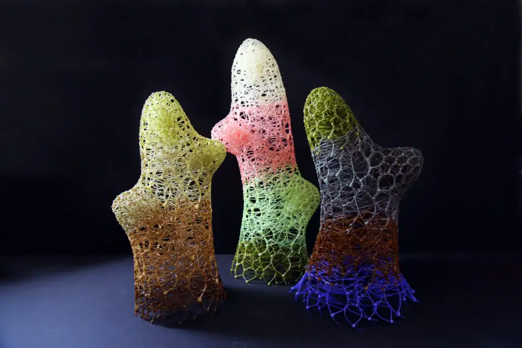 Her sculptures are not static objects but evolving forms, balancing between human hand and mechanical precision. In Houston, Bio Morphe situates her practice at the intersection of art, science, and sensory experience — a place where the material begins to feel alive.