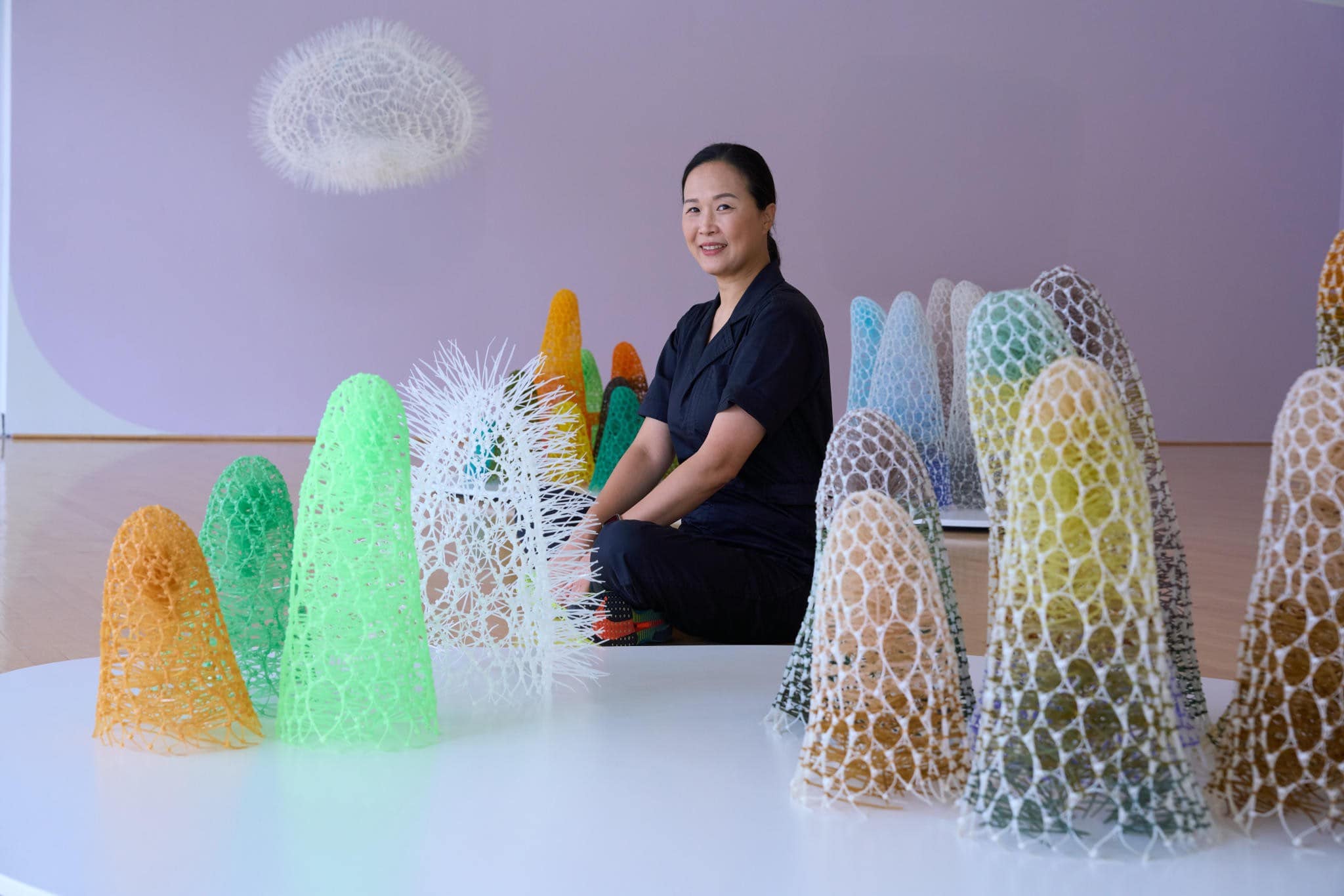 Through her intricate weavings, Sui Park reminds us that even synthetic matter can carry emotion. Her works breathe softly, like murmurs of another world. Between structure and metamorphosis, she composes a language of form that turns the artificial into something tenderly alive.