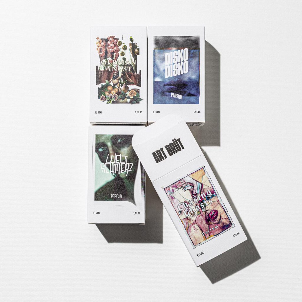 The complete ART BRÜT fragrance line brings together distinctive compositions that go far beyond traditional perfume structures. Each scent follows its own narrative, inspired by emotions, memories, and moments that cannot be categorised – only experienced.