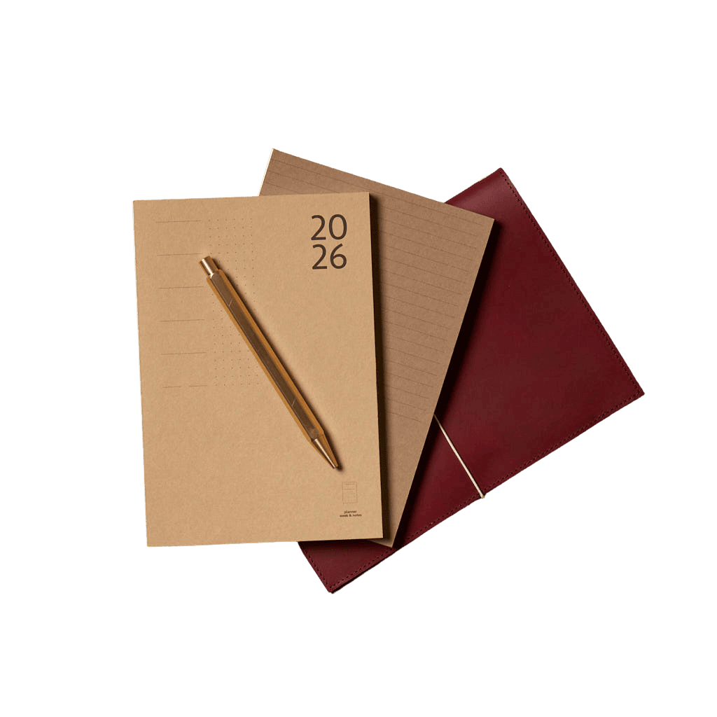 On the fifth day of the THE Stylemate Advent Calendar, we are giving away an exclusive Paper Republic writing set, consisting of four meticulously crafted items: the le portfolio leather notebook in A5 in the colour Bordeaux, the le stylobrass pen, a weekly planner for 2026, and a lined notebook.