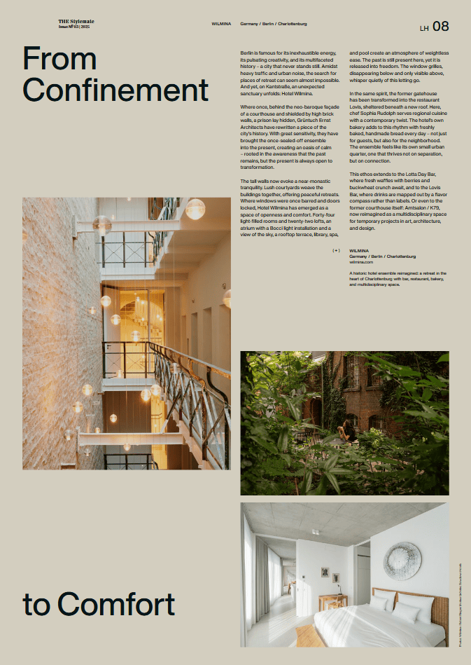 The print edition THE Stylemate No. 03 | 2025 – “Time to Shift” is now available in the THE Stylemate online shop. Get your copy and dive into essays, interviews, Mindful Essentials and the Lifestylehotels™ Selection featured in this issue.