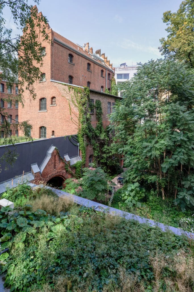 Enclosed by walls that now offer protection instead of confinement, Wilmina feels almost monastic. Lush courtyards connect the buildings, creating peaceful spaces to pause. Where barred windows and locked doors once defined the place, light now floods through 44 rooms and 22 lofts. The atrium, illuminated by a Bocci light installation, opens to the sky; a rooftop terrace, library, spa, and pool complete the sense of effortless calm.
